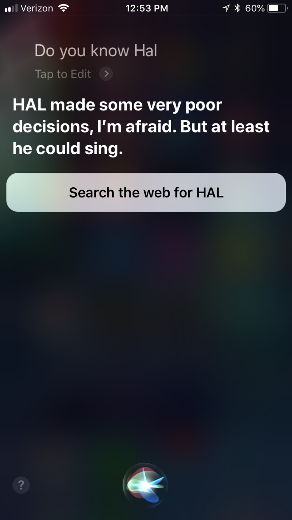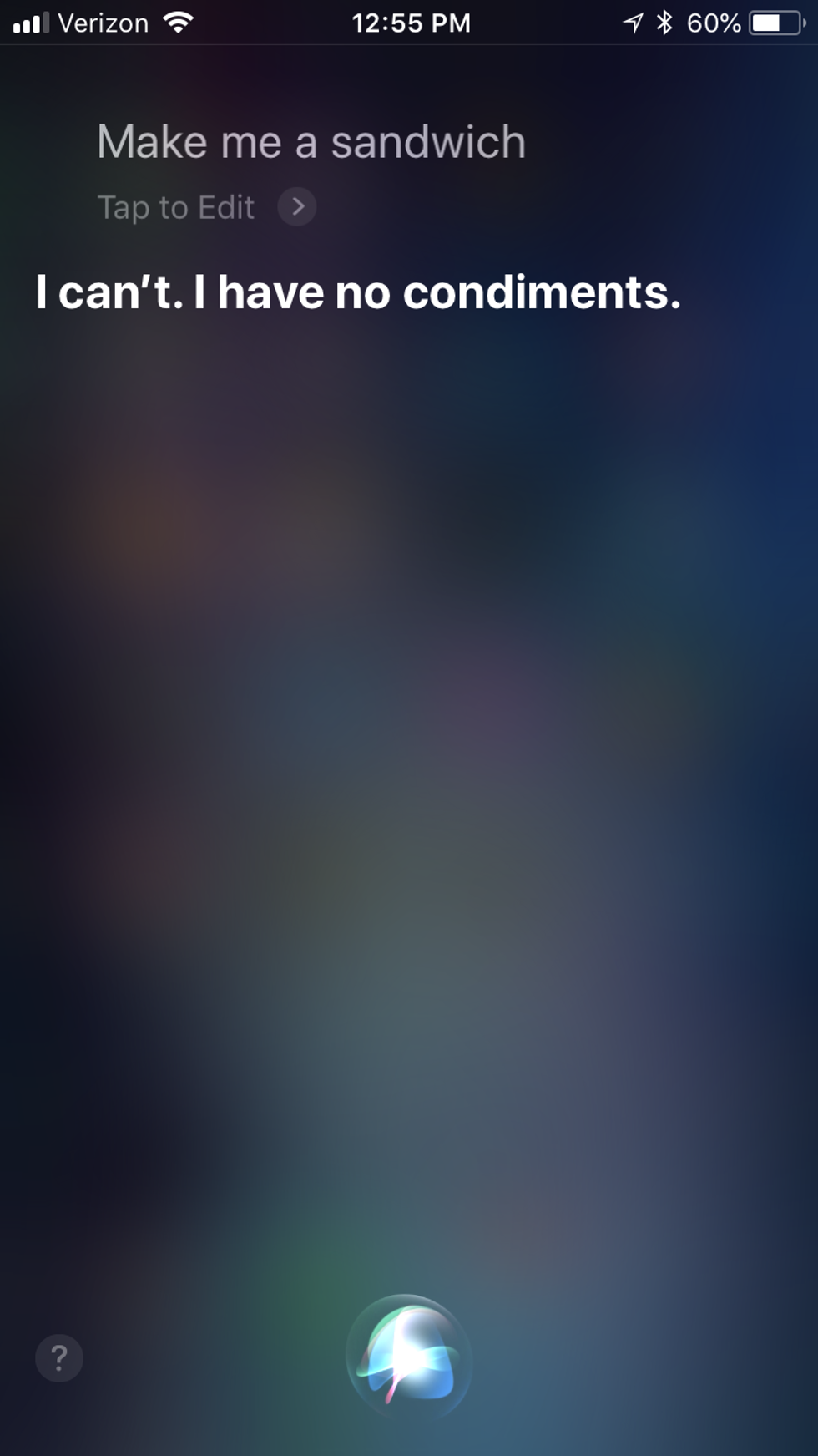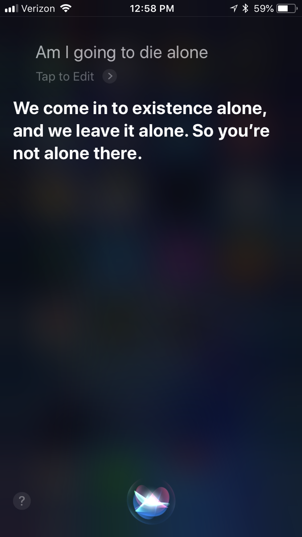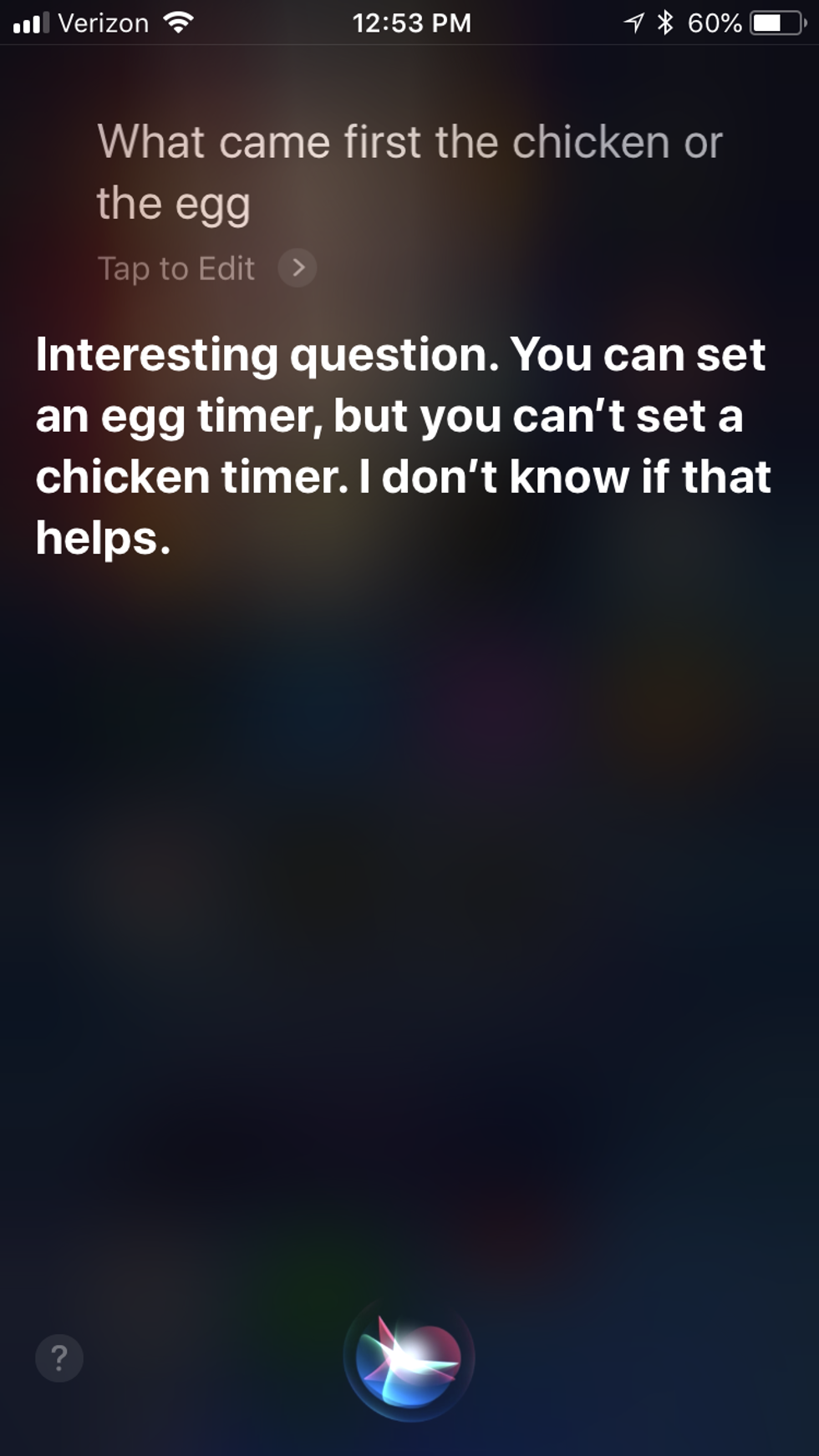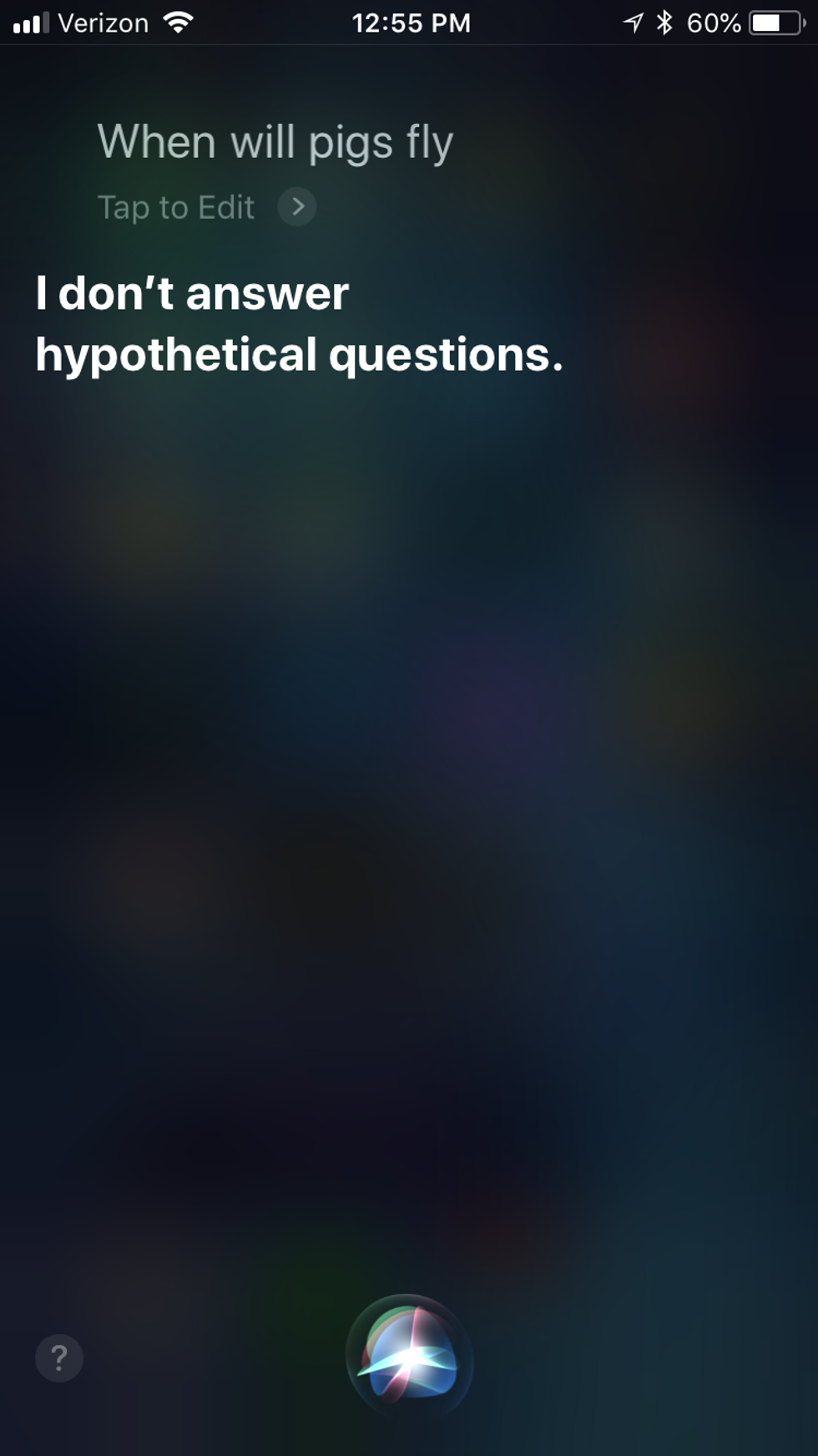 Siri is probably my most favorite thing about owning an iPhone. I'm sure these questions can be used on the Android version. I was pleasantly surprised at some of the responses I got today. I made it to where my Siri is a British man and it's awesome. Here are some of the responses I got when I interrogated Siri.
