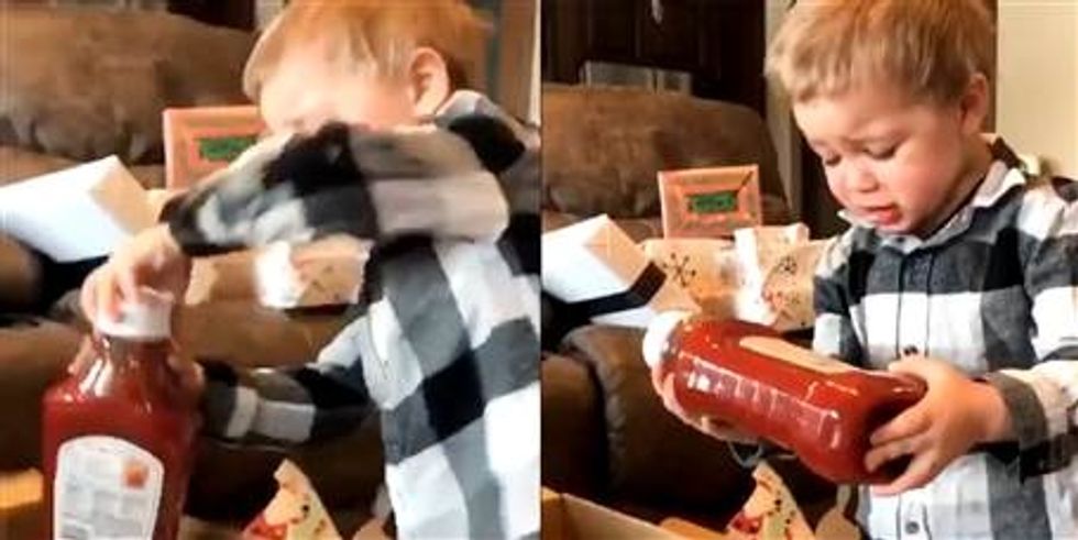 3. Sawyer got exactly what he wanted for Christmas--a large bottle of ketchup.