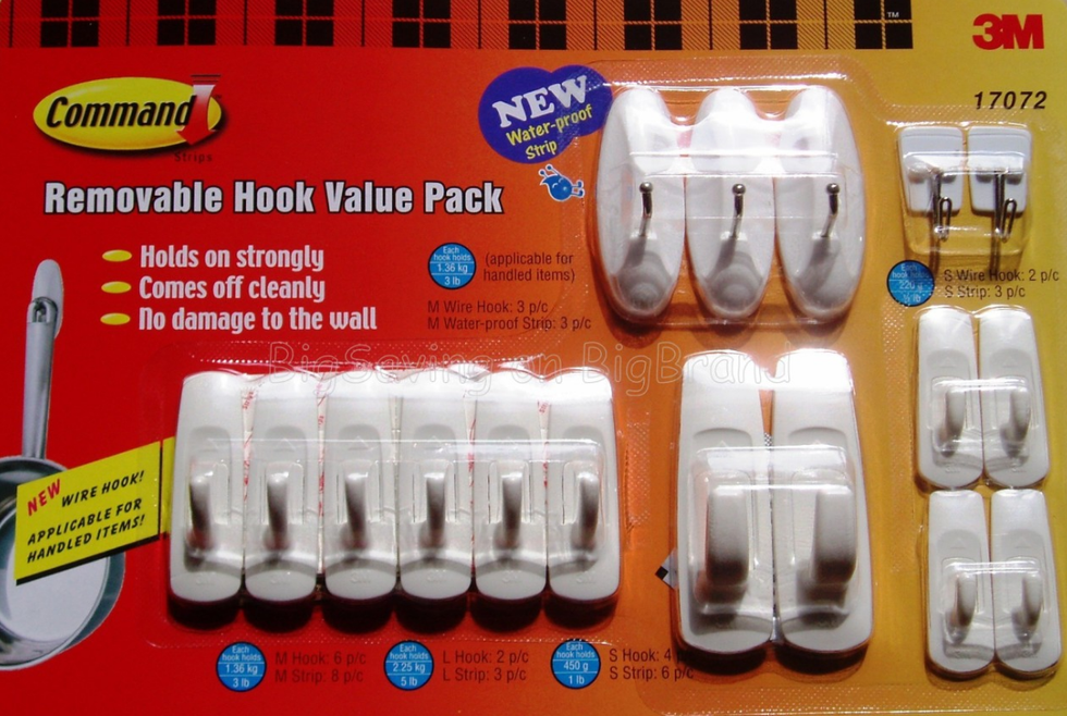 Command Strips are so useful when move in day comes around. Use these for hanging pictures, car keys, bags and everything in between!! There are all different sizes that can hold different weights so be sure to read the packaging.