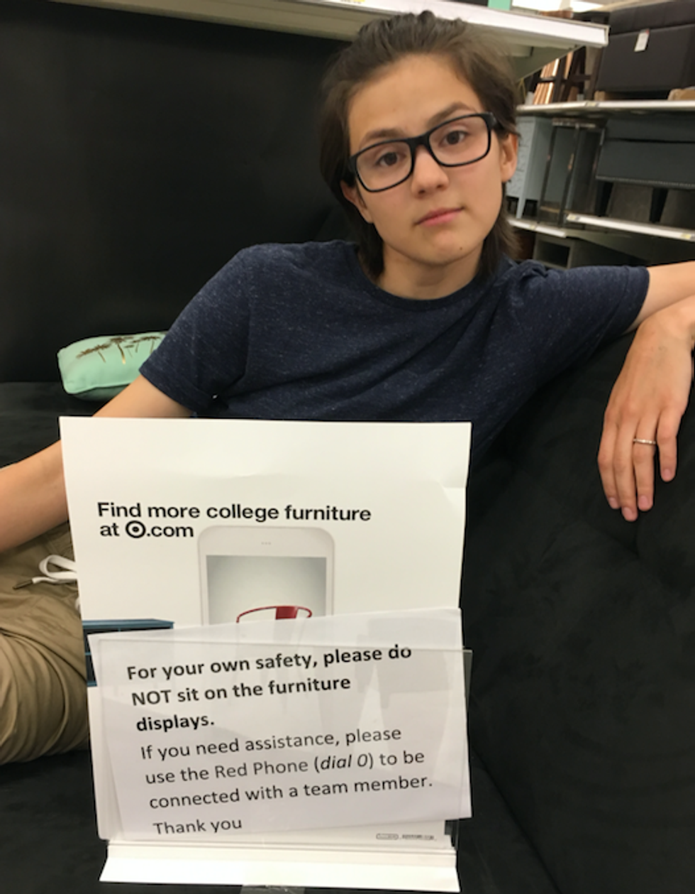 No one is telling you what you can or can't do. Now in this case, my girlfriend is doing what Target is asking her not to do. But if she did what she was asked, I wouldn't have gotten this funny picture! Why follow everything your told to do? Sometimes you have to put yourself first and with this being YOUR summer vacation, you have the right to do as you please. You deserve to put yourself first from working so hard year after year. Make yourself laugh, reward yourself and put yourself first. You can't be the best you can be unless you make yourself a priority.