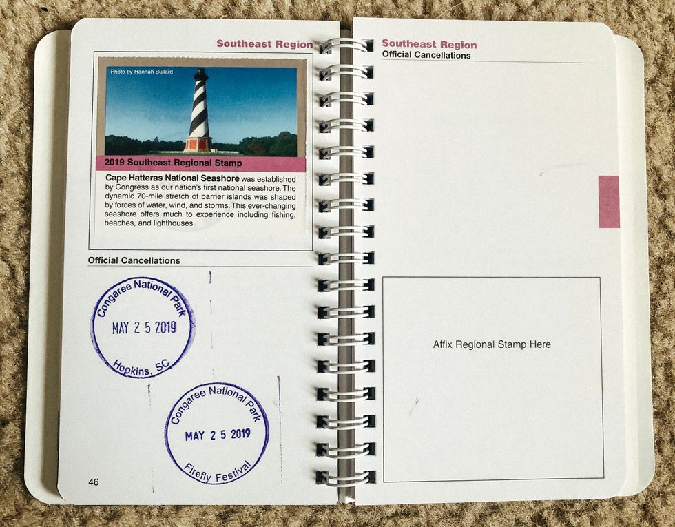 My new National Park Passport with the official Congaree Cancellations from May 25, 2019.