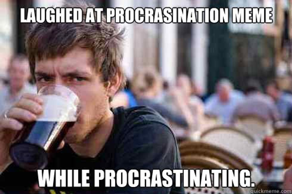 Note: To be fair, I typically procrastinate with purpose. As I have come to know myself over the past 21 years, I have realized that this is a trait that isn't just going to go away, but I have learned to manage. I don't simply wait until the very last second and free-hand everything. Before I begin procrastinating, which is anywhere from two weeks to three months before the paper is due, I decide how long I would actually need to do the paper. I usually give myself two days at the most, and possibly 2 hours at the least, depending on how long it has to be and what is required. This tactic has actually worked out pretty well in the past, and I am proud to say that my procrastination skills haven't failed me yet.