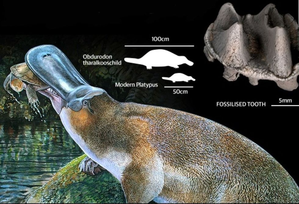 A lot of animals around today, like penguins and platypuses, used to be a lot bigger compared to the size they are today. Don't believe me? In 2013 scientists found a tooth from a prehistoric platypus that helped them figure out that platypuses from that time would have been around 3 feet long. That's more than double the size of the animal today.