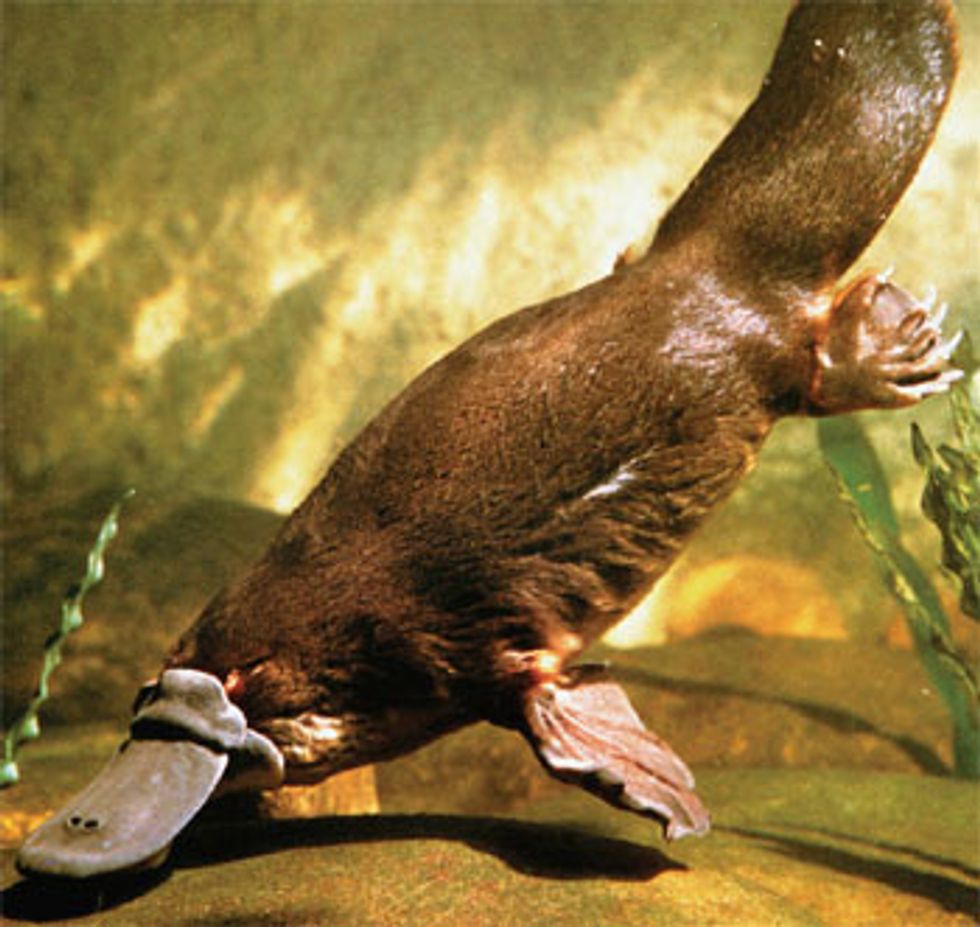 When the first platypus was sent to England from Australia in the 18th century the scientist who examined it thought someone was playing a trick on them. Honestly, who can blame them? A mammal that lays eggs, has glands to feed its young but no nipples, a spur that is sometimes venomous, and retractable webbing between its front claw. Oh yeah, and a bill. Seems suspect.