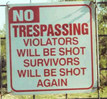 7. Trespass on private property.