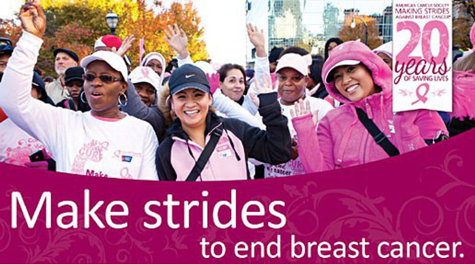 Making Strides Against Breast Cancer walks are breast cancer charity events where people come together to support those affected by breast cancer. These walks raise awareness about the steps that will help to reduce the risk of getting breast cancer. The money raised through these events goes toward the American Cancer Society to fund breast cancer research, information, support, and mammograms for women who need them. The following are dates you can get involved and participate in an event in New England this October: