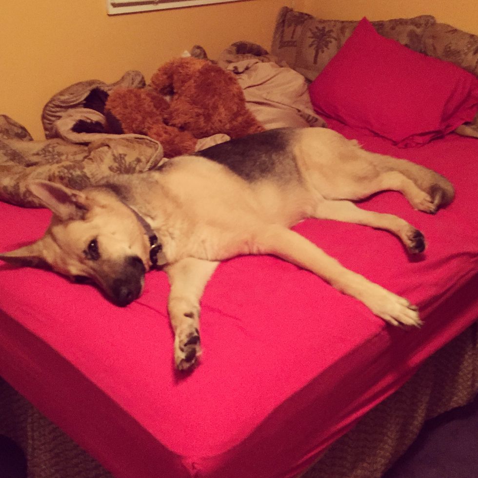 I, of course, being a huge dog lover offered my bed to my dog. Didn't realize he was going to claim it instantly. I haven't slept alone for the last seven years. To me, it's worth it but some people would prefer to have their whole bed to themselves. If you're one of those people I wouldn't let the dog up on the bed once, because from then on they are going to give you those puppy eyes and before you know it they'll be up there every single night. They'll even claim a spot where they go every night.