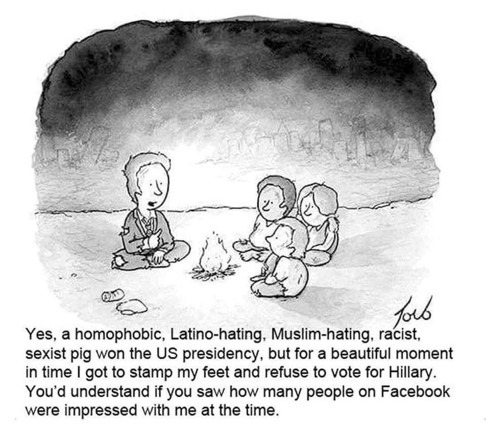 The sheer unwillingness of Bernie supporters to vote for Hillary astounds and terrifies me. There is no earthly reason Donald Trump should become the leader of our already floundering country. But if it happens, it will be the result of apathy. His success will rest, not with his terrifying and fervent supporters, but with the masses of people who decide not to vote or with those who strayed to a third party candidate rather than uniting around Hillary.