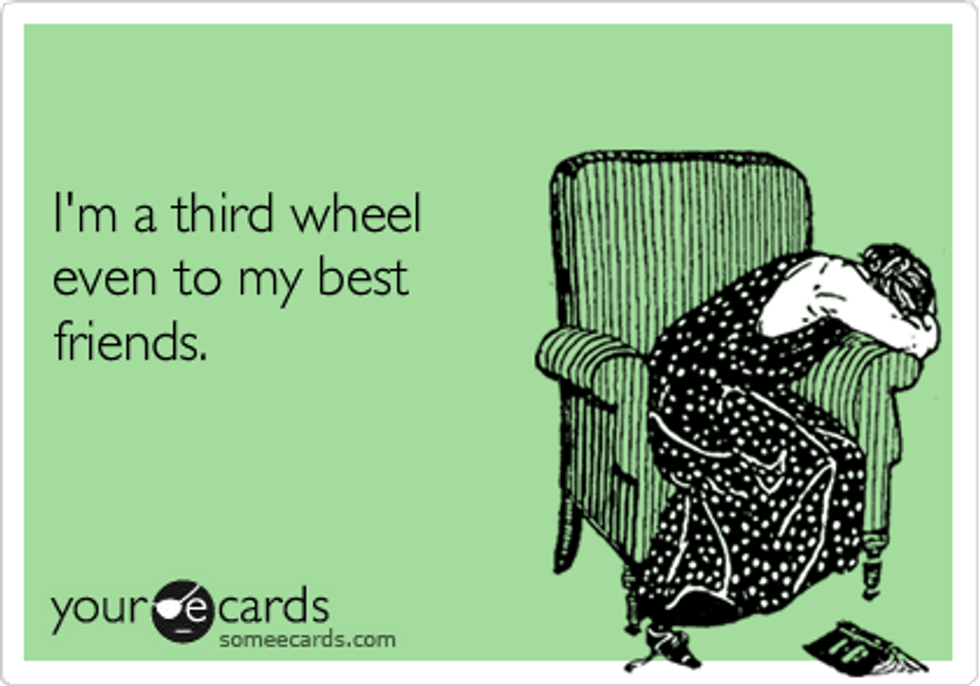 Being the third wheel in the friendship didn't hit me until they stopped inviting me to do things with them and started doing everything as just the two of them. So take a second to figure out if you are also the third wheel in the friendships you have and if you aren't well then think of who might be in your group of friends.