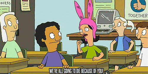 If you watch "Bob's Burgers" then you're bound to know the ridiculous, disturbing, yet funny Belcher family. Each character has a quirky personality that can sometimes reflect even the sweetest of souls. Louise Belcher, the youngest of the family, is a complete savage. If there isn't drama, adventure, or manipulation, then you can count her out. She's an extremely evil nine-year-old, and sadly her sass is pretty relatable. Tina is a boy-crazed thirteen-year-old with literally no charm or coordination, whatsoever, she's basically the embarrassment of the family. Tina does happen to make pretty good jokes, but her dry sense of humor keeps characters on the show from enjoying them. Gene, the middle child, is literally the type of person who should stay behind close doors. He's basically the most unhygienic person. He farts in basically every episode eats anything from anywhere, but his passion for music is something we all can relate too. Here are 13 times that you're guaranteed to relate to the Belcher family.