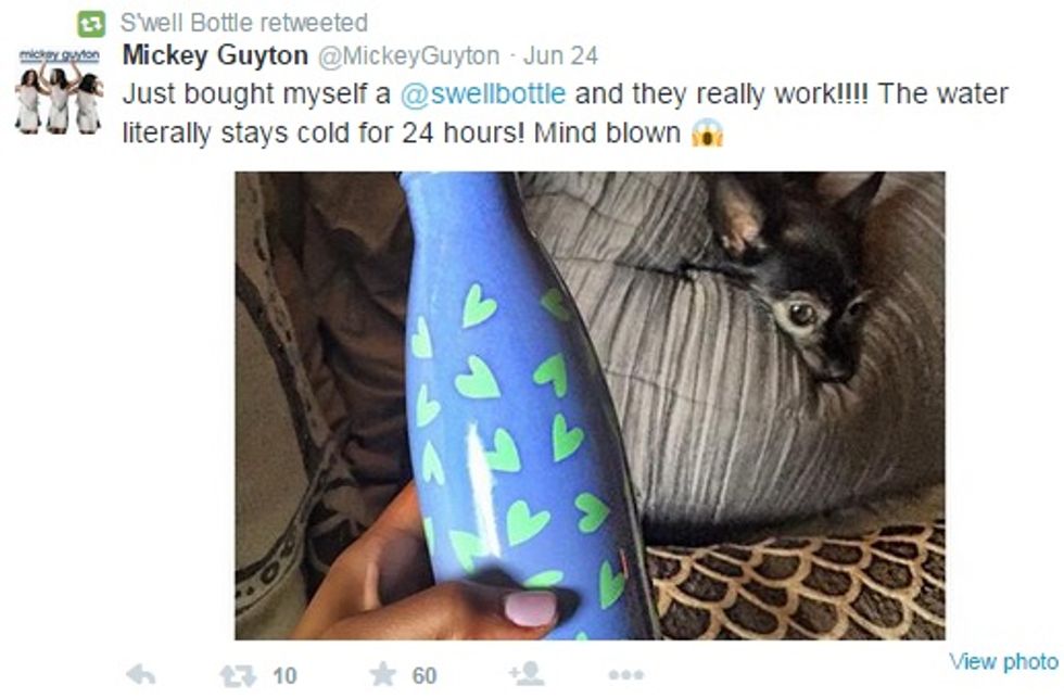 S'well has established true purpose behind their product and continues to gain positive publicity through celebrities, social media, and the active community!