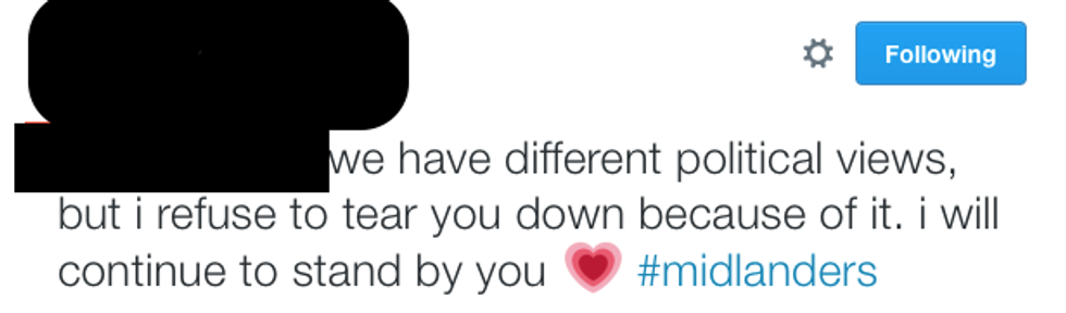 When I saw this tweet above I was inspired and motivated that this change can and will be done by our society because people like the person above realize that this issue is bigger than ourselves. They are loving, willing, and strong enough to not let political differences tear friendships apart. We sometimes let our emotions take control of our actions and that is where we are likely to mess up. The wisdom and maturity of this group of people is something that many people in our society, including myself, can take notes and learn from. I would like to praise these people for being a light to others around them in this dark world that we live in.
