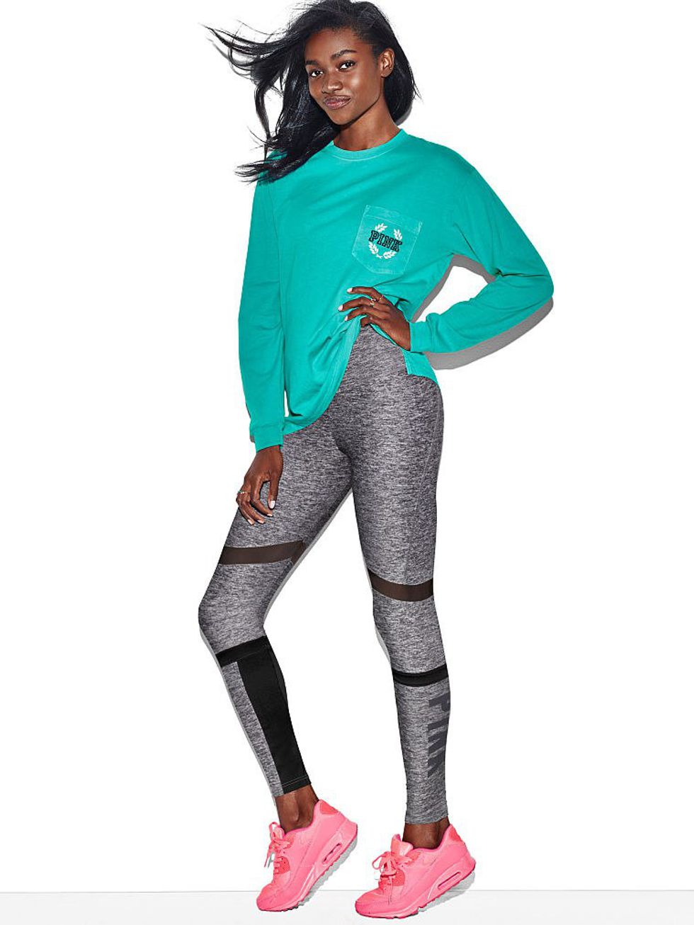 Please observe this Victoria's Secret model looking especially happy to be wearing leggings and a t-shirt. This is not how I felt after wearing these outfits for a (slightly) prolonged period.