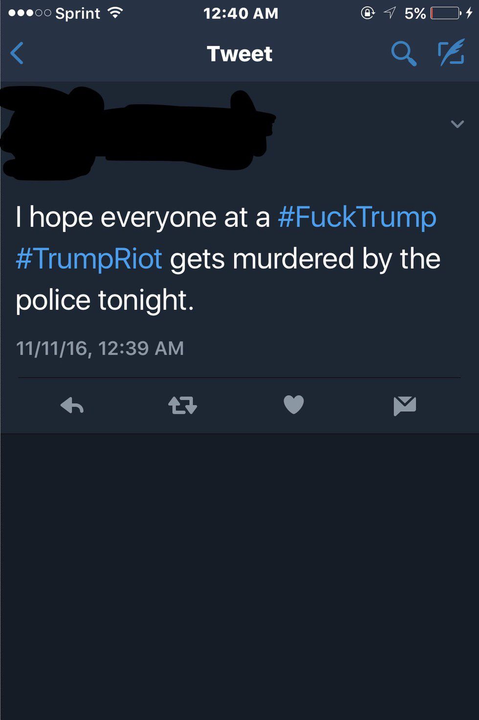 As we've all heard, we have a new president elect and A LOT of people including myself are not thrilled, in fact we are actually pretty frightened. I have heard a lot of rebuttals and rationales over the last week about how Trump is not going to be bad for the LGBT community or any other minority community. This is a half truth at best because I followed the campaigns and political news for the last year and a half and I do not think I've ever heard Trump tell us his own opinion on anything really. I know he is against immigration and what not but the closest we got an opinion on the LGBT community was when he picked Mike Pence to be his VP. Pence is well known for his Anti-LGBT legislation including his belief in so called "conversion" therapy. I can agree that the republican party is not good for anyone but themselves. Over the last decade we have made significant progress in the way of human civil rights such as the legalization of same sex marriage. As you've probably also heard, people are protesting in mass numbers because of our ne president elect. I was following the #Trumpprotest on twitter the other night and it disturbed me in ways I didn't think were possible. Here is one example.