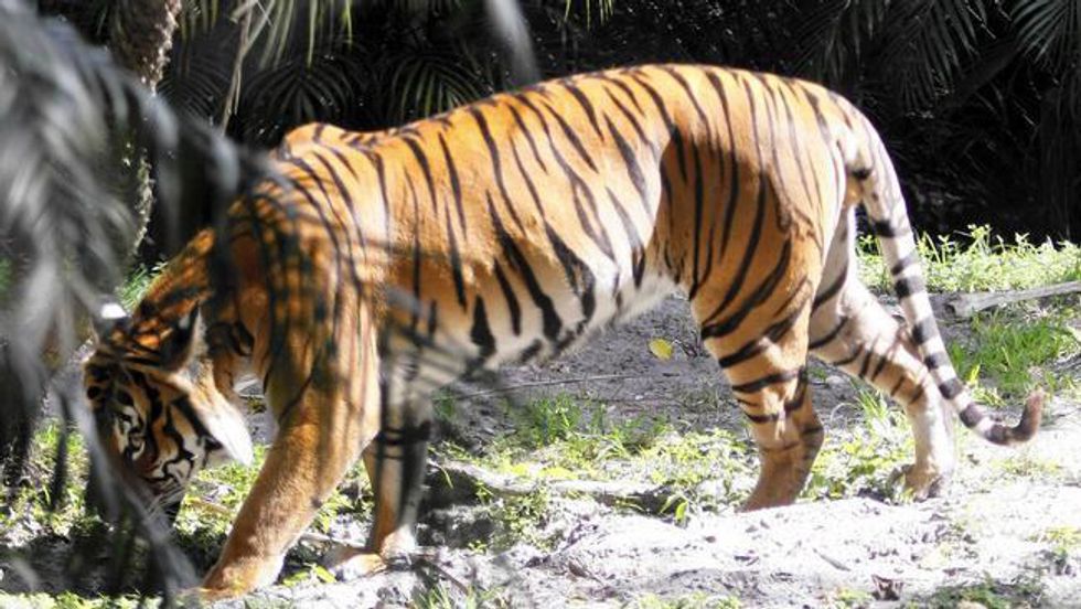 Hati, a Malayan tiger of the age of twelve is tranquilized at the Palm Beach Zoo in Florida by the institutions trained response team. A member of an endangered species, Hati is one of approximately 240 to 340 Malayan tigers in the world. Hati was accused of killing zookeeper Stacey Konwiser, who had worked with him and three other Malayan tigers during her three years at the zoo via a neck injury. Hati was spotted defending Konwiser “like prey”.
