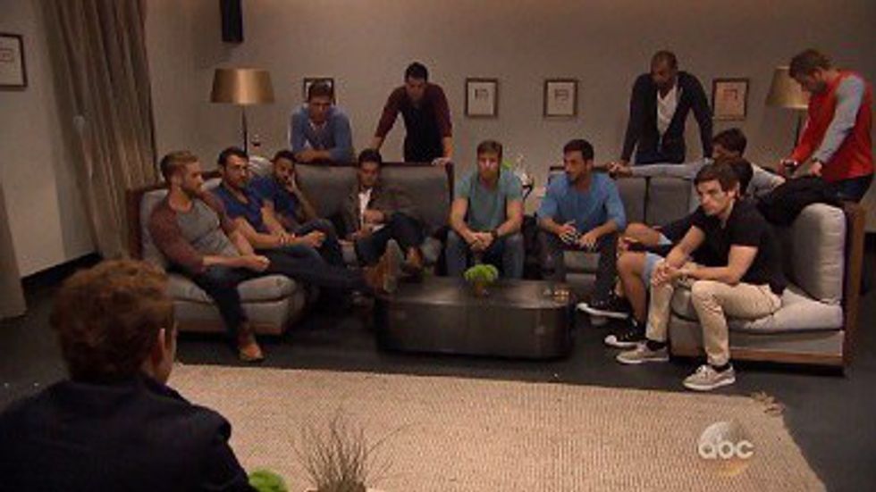Clearly, this seating arrangement cannot be comfortable, but no one is getting close to "The Other Guy." The whole episode proceeds to go this way (downhill). It all ended when Mr. Pretentious Princeton (Ian) slut-shamed Kaitlyn. "I feel like you're here to make out with a bunch of dudes on TV. And bringing Nick in, I don't question his intentions – I question your intentions. I really see you as a surface-level person at this stage, and I wonder if you're really that shallow because I don't see anything beyond the surface."