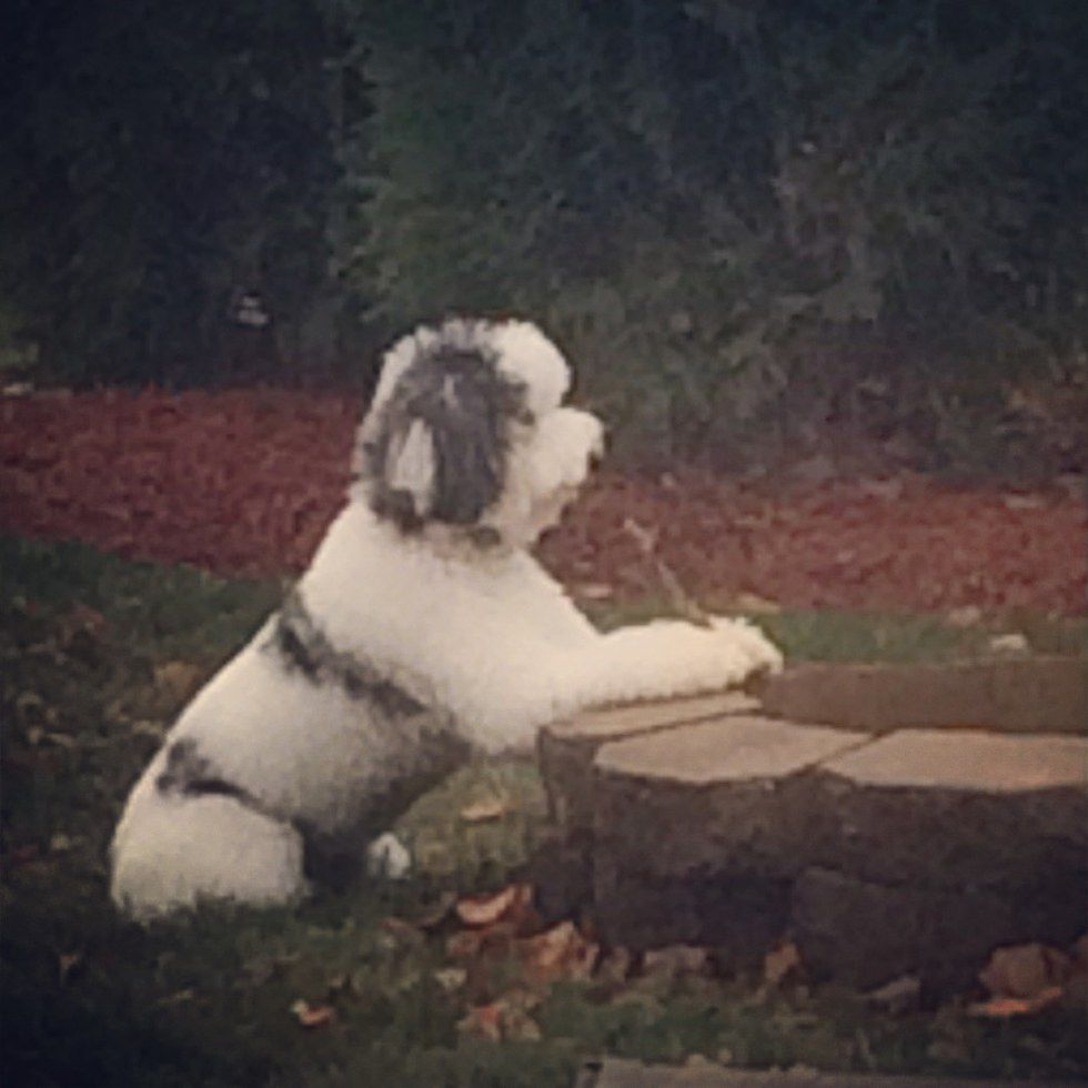 Pictured above: Sadie eating a delicious stick she found near a tree.