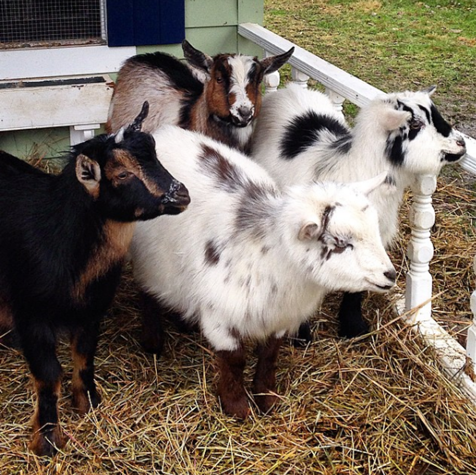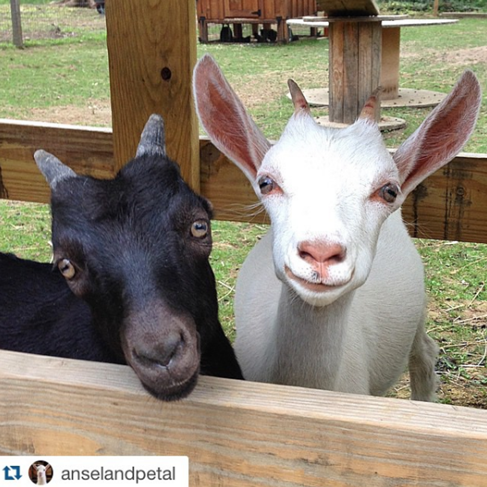 Leanne Lauricella started the Goats of Anarchy Instagram in 2014, after adopting her first baby goats, Jax and Opie. What started off as simply a loving home for pets became much, much more as she quit a well-paying job and adopted her first rescue goats, Ansel and Petal (pictured below). She devoted her time rescuing innocent baby goats from abusive and unhealthy conditions, rehabilitating them and teaching them that there really is love in the world. Ansel and Petal were found in a backyard starving to death among hundreds of other mistreated, dying, and dead animals. Like heroes in capes, Leanne, Barnyard Sanctuary, and several other angels swooped in to save the over 150 poor animals that survived the ordeal. Since then, Ansel and Petal have grown into happy, healthy adult goats in Leanne's care. Just look at Petal's smile!