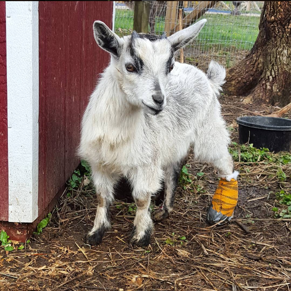 After the rescue of Ansel and Petal, the Goats of Anarchy farm continued to expand as they rescued more and more goats from similarly abusive situations. However, the farm's mission changed after the addition of two special needs babies, Chibs and Lyla. Chibs and Lyla were born with leg deformities and their owner couldn't take care of them, and of course, who could say no to their little faces? Chibs had contracted legs that made it hard for him to walk, but fortunately they corrected themselves. Lyla, on the other hand, is a different story. She is missing her entire back left leg, hip, and part of her pelvis, has a shortened spine, and had a hole in her belly that was leaking urine. With so many issues, Lyla had to make a lot of vet trips, which means there were a lot of vet bills.