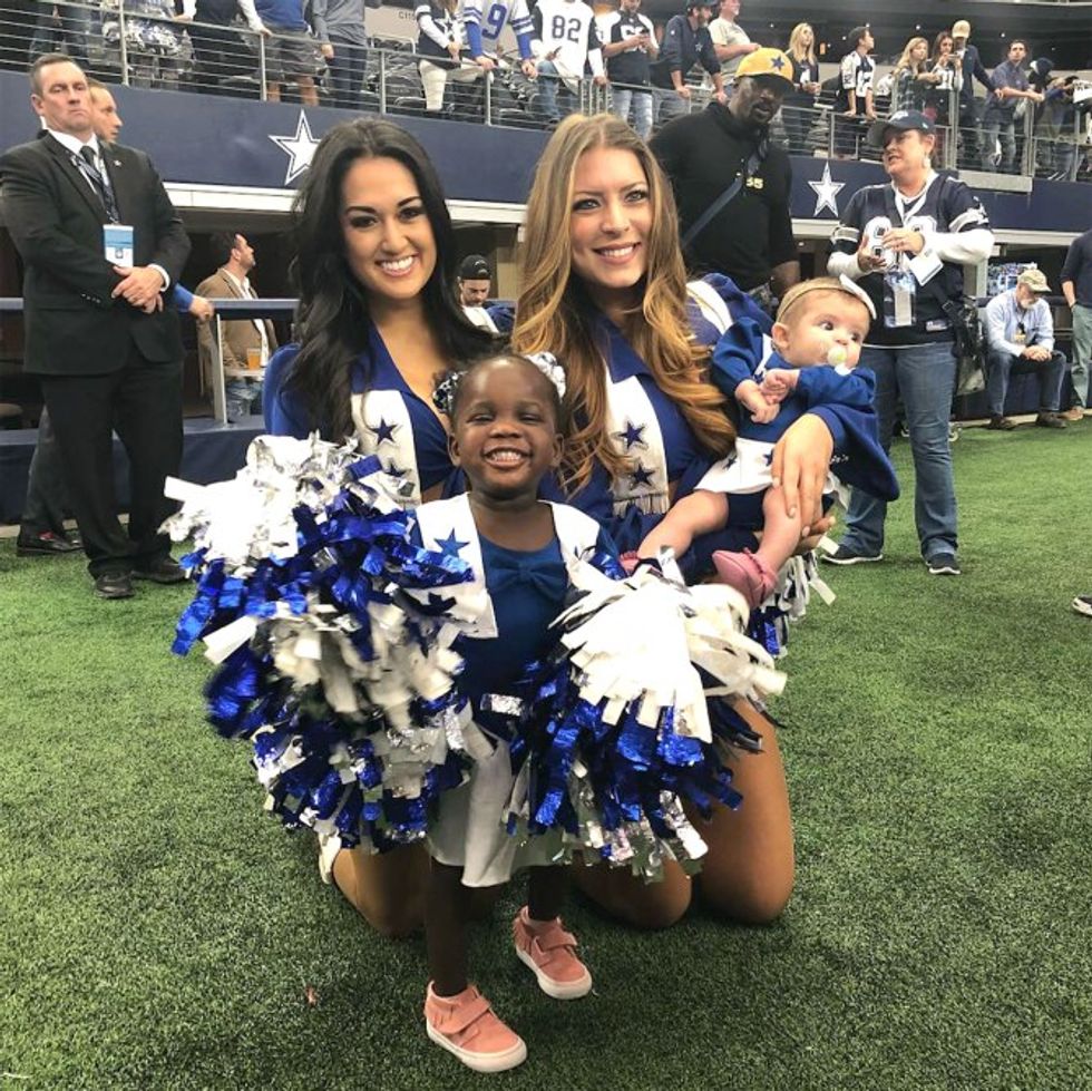 Willa Gray and Ada James couldn't have looked cuter in their replica cheerleader costumes. Step aside Cowboy cheerleaders, looks like you got some competition.