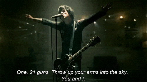 I think some of these songs reminded me of my first crush not only because of the message of the song or the meaning of the lyrics, but because they were the kind of genre that he listed to. I wanted to like what he liked, and I was so head over heels for him that I wanted to explore the same interests as him. Green Day was one of those bands, and the song 21 Guns was one of his favorite songs at the time.