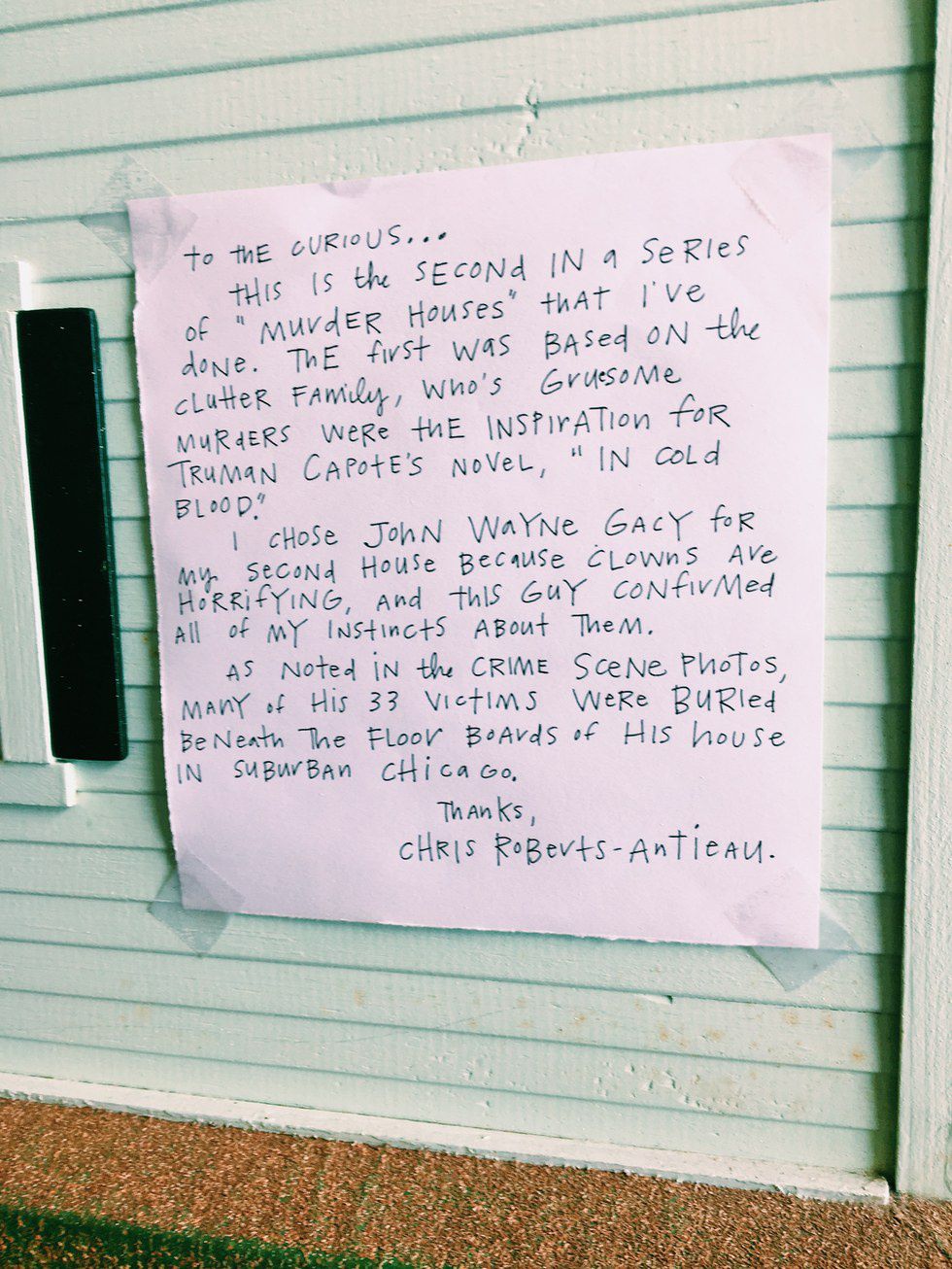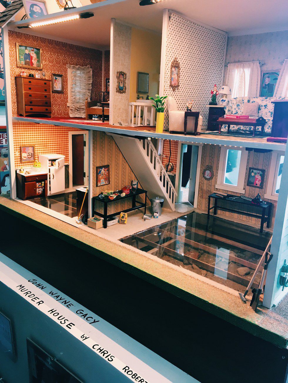 One of my favorite pieces was a doll house replica of the infamous murderer John Wayne Gacy's house by artist Chris Roberts-Antieau. The artist made an eerie and fantastic depiction of Gacy's house with a view of the victim's skeletons buried underneath the house. Even though the doll house was kinda creepy to look at, I couldn't stop myself from looking at it. I thought it was the most interesting and detailed piece at the exhibit.