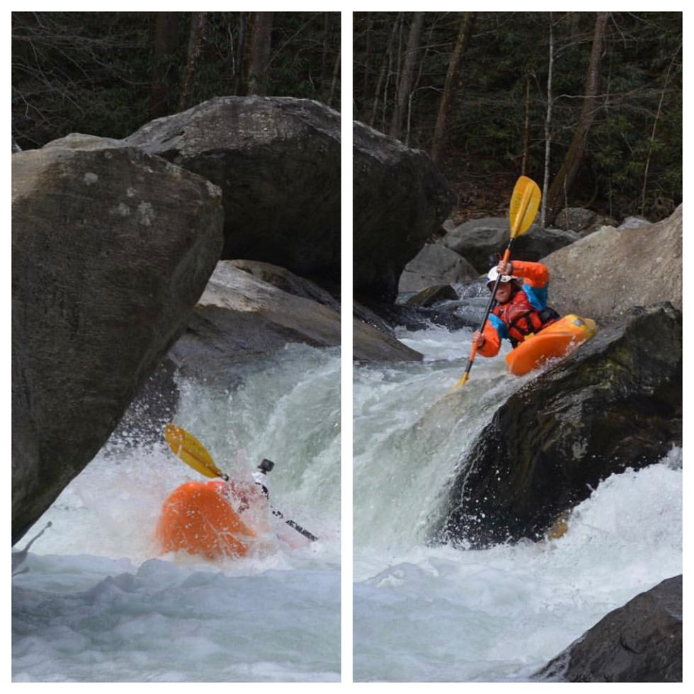 While making the instinctive decision to crank a lefty took mere nanoseconds, it felt as if the action itself was in slow motion--I watched the bow lift and glide right over the hole, water splitting around my boat as if I was parting the Red Sea. I gracefully skip out from under the rock, and breathe a great sigh of relief. As I come out from underneath the boulder, everyone begins cheering for me and congratulating me on such a smooth line. Though I shouldn't be, part of me is annoyed--I beatered. I don't deserve praise. I slowed all of you down, and put you all in a position I'm sure you didn't plan on being in when you decided to go kayaking with me. Why are you cheering?