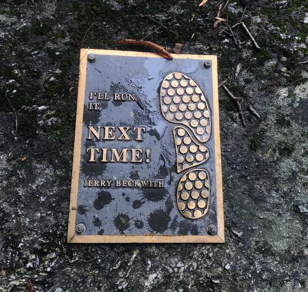 'Twas a halfhearted scout at best-- as soon as I saw the Notch I was out. It wasn't my day to be a hero, and a funny little plaque on the ground comforted me in my moment of perceived weakness. You know what, Jerry? Maybe I will run it next time. Maybe.
