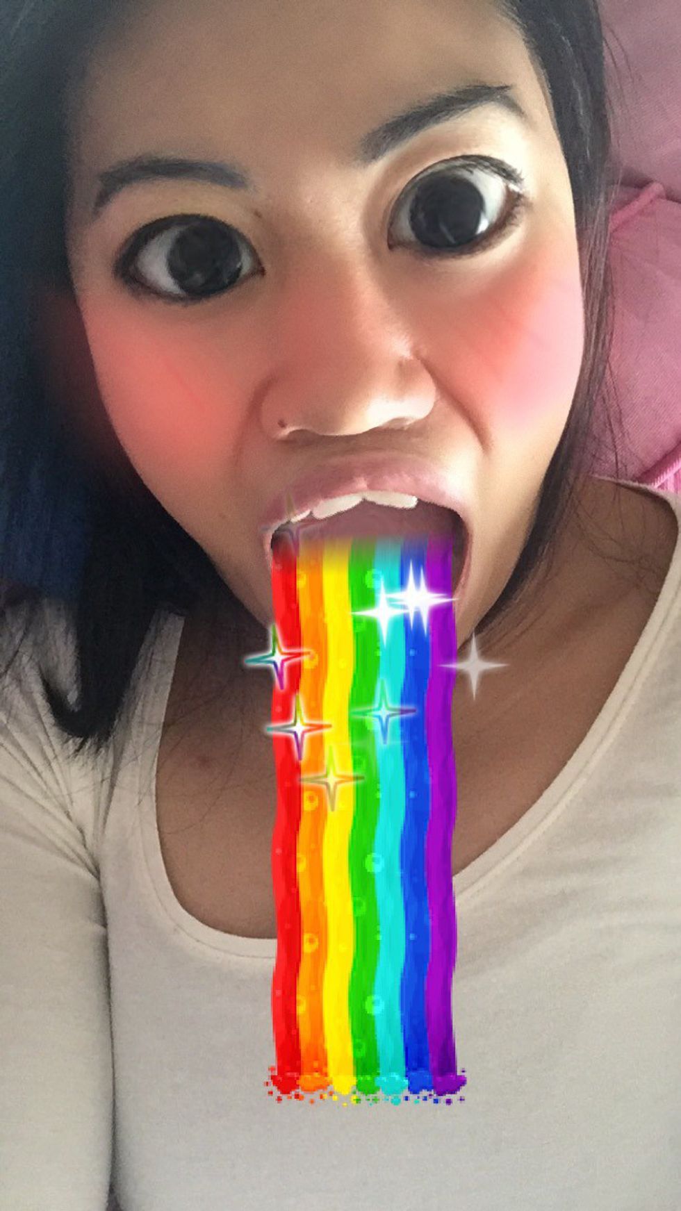 A classic. Who doesn’t love throwing up rainbows and having their eyes grow wider? This is what got my attention when Snapchat filters first came out. I love this filter so much because it makes me feel like a unicorn throwing up cupcakes and unicorns!