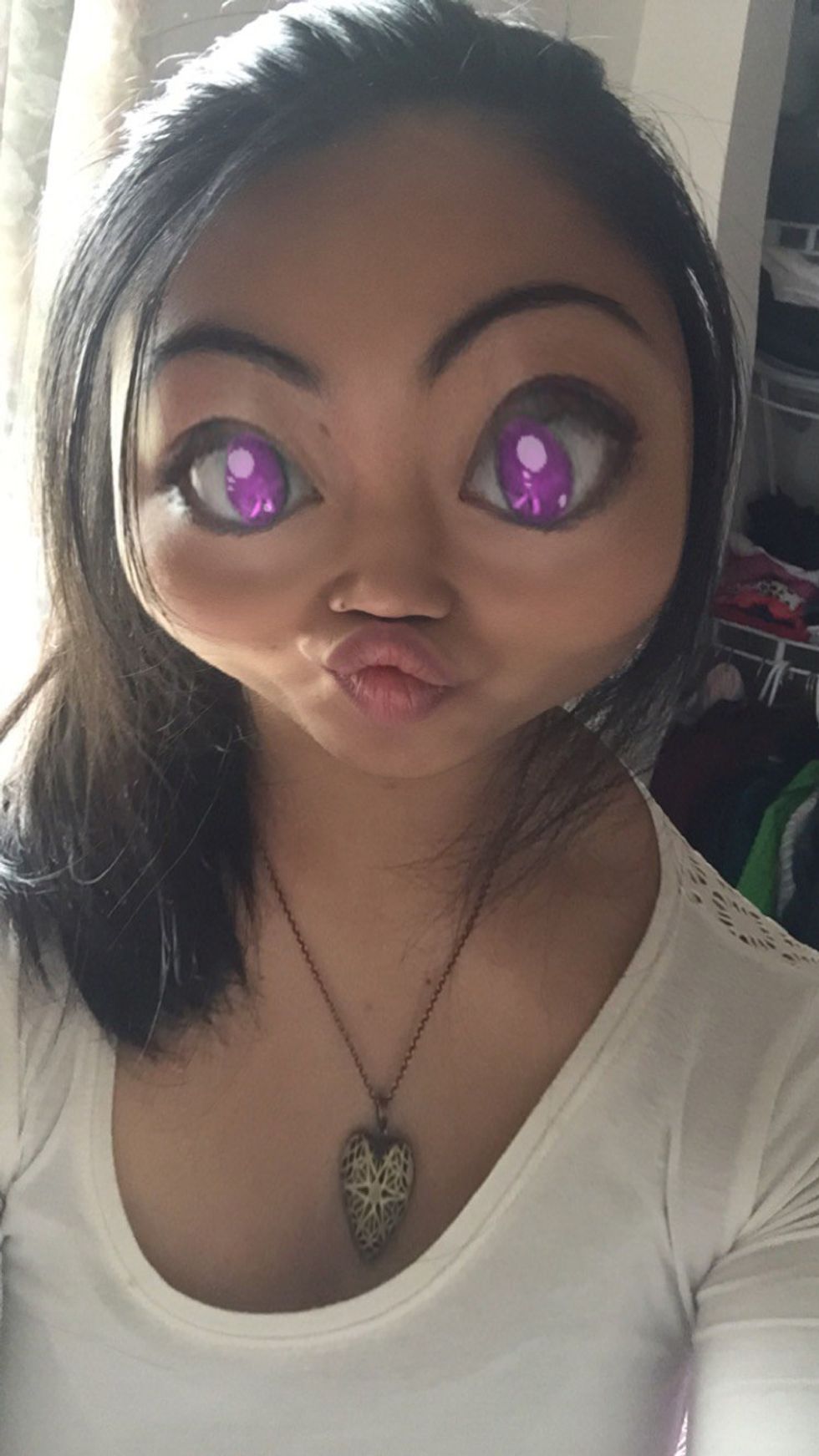Any Snapchat filter that starts off cute/normal but once you open your mouth something scary comes out. Although it does make my eyes look very pretty!