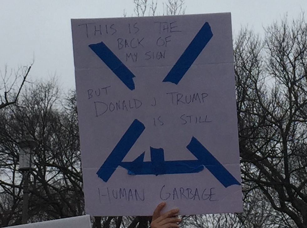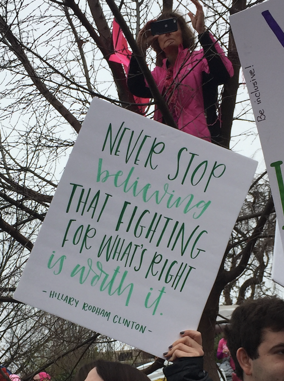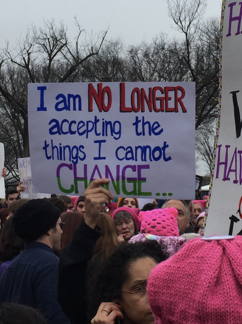 This past week on January 21, I (along with many others) attended the Women's March on Washington on the mall in Washington D.C. The experience was informative, empowering and inspiring. One particularly inspiring aspect was all the creativity put into the different signs. I am about to show my favorites, but I also want to point out while many signs featured vaginas, which is awesome in many ways because reproductive rights are important and vaginas are normally thought of as taboo, some women do not have vaginas. Also, many signs focused on Trump and politics and while it was a march against Trump and his ideas, at least for me the march was more just about the empowerment of women in general. With that said, here are some of my favorite signs I saw. I saw so many more that I was not able to take good pictures of, but of these and others so many were funny, thought-provoking and/or clever.