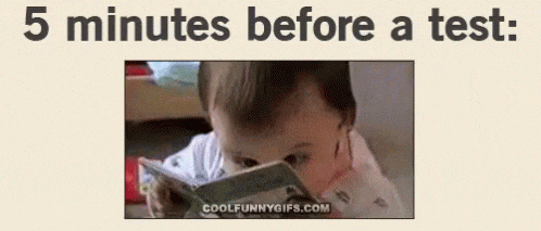 Trying to cram every piece of information into your brain the last few minutes before the test somehow thinking you are going to learn anything new or remember anymore in these last few moments. It somehow comforts us to tell ourselves we are learning.