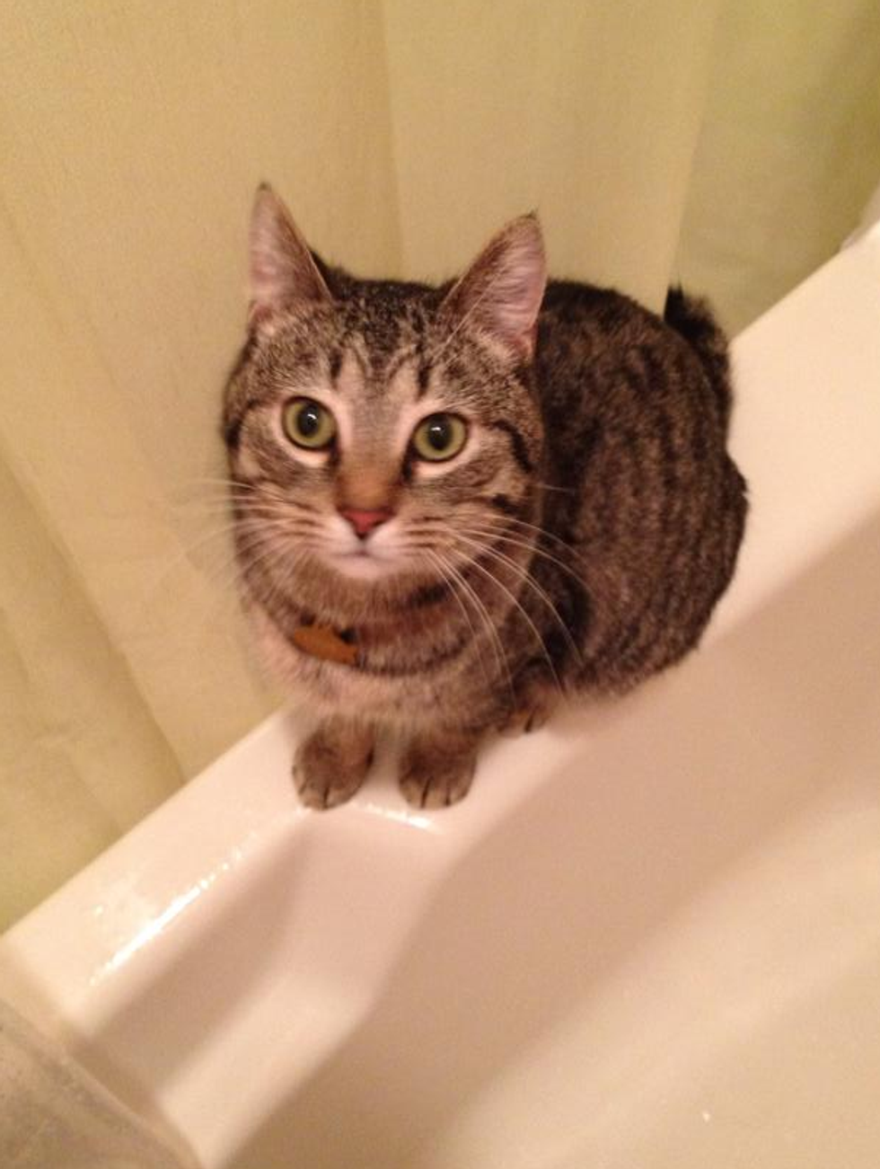 No matter what, they definitely want to be wherever you are: "Please don't turn the water on. I just want to keep you company."
