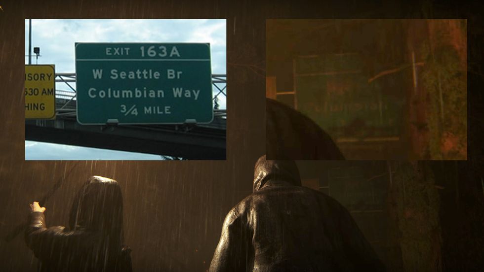 People were already speculating that this game is going to largely take place in the Pacific Northwest, specifically around Seattle, Washington. This trailer continues to hint at that with a street sign briefly visible that references a real sign in Seattle for "Exit 163A, W Seattle Bridge, Columbian Way."