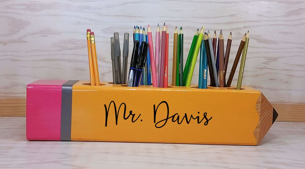Pens, pencils, colored pencils, crayons, markers, glue, glue sticks, construction paper, scissors, lesson plans, dry erase markers- the list is never ending!