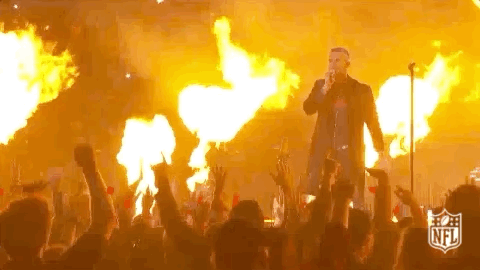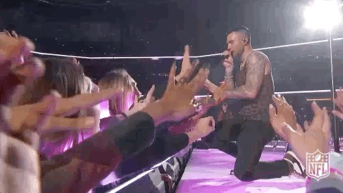 OK, Maroon 5 is one one of my absolute favorite bands! This better be good. OK, their stage is in the shape of the "M" of Maroon 5. That's cool. Oh wait, for a performance like this we could have gotten a liiitttllle more creative. But it's alright, I can live with it. Oh, yay, pyrotechnics!