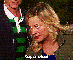 Apparently I'm graduating in four months and I don’t feel as though I’m ready to be thrown to the wolves yet. I remember being in high school and thinking I had plenty of time to mature and feel well equiped to enter the world of adulthood, but that didn't happen. I try not to think about it as much as possible but a few questions and thoughts often come up. Leslie Knope knows exactly how we're feeling.