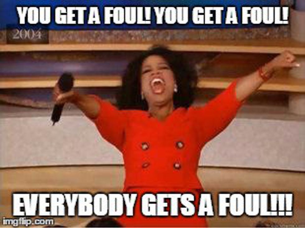 Swatting at the ball? Seriously? Over the back? Seriously. Why are we making ridiculous fouls in the first half when we literally have 0 fouls to give. Can we please be smart with the fouls you chose to make?