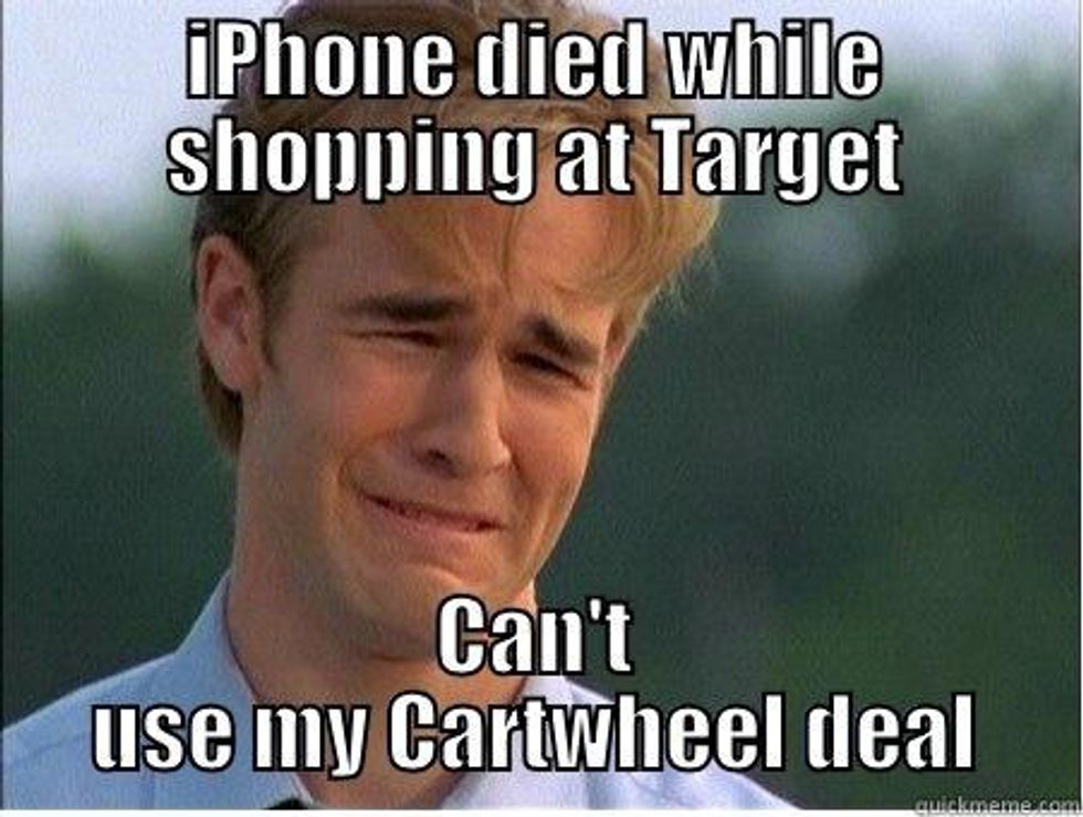 2. On phone with friend, "I'm just running in Target, I'll be at your place in 20 minutes."