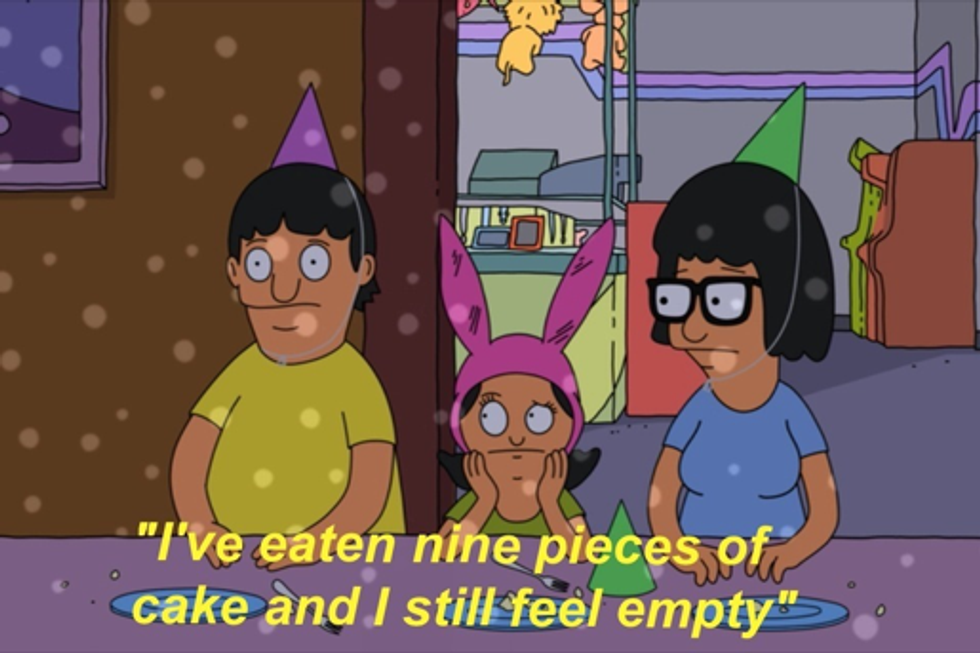 6. “I've eaten nine pieces of cake, and I still feel empty." Because no amount of American spaghetti and wine can cure your Italian fever.