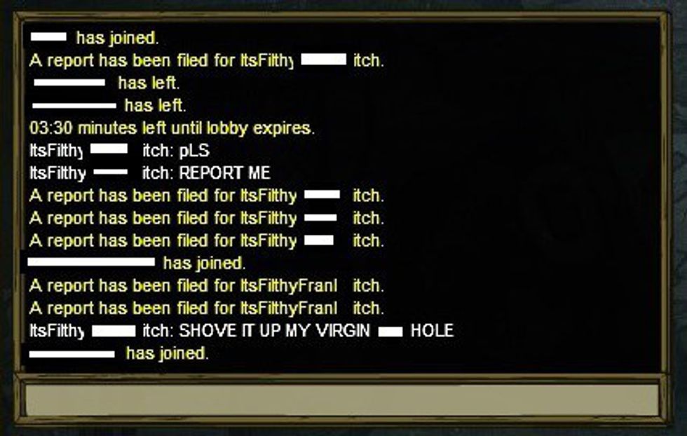 I guess I should. I should just ignore all the rude remarks about autistic kids and some of their mental challenges. Why waste the time reporting a player spewing the most racist venom I’ve come across, even going so far as to dropping the N-word? I mean, sexism and abortion jokes aren’t all that bad are they?