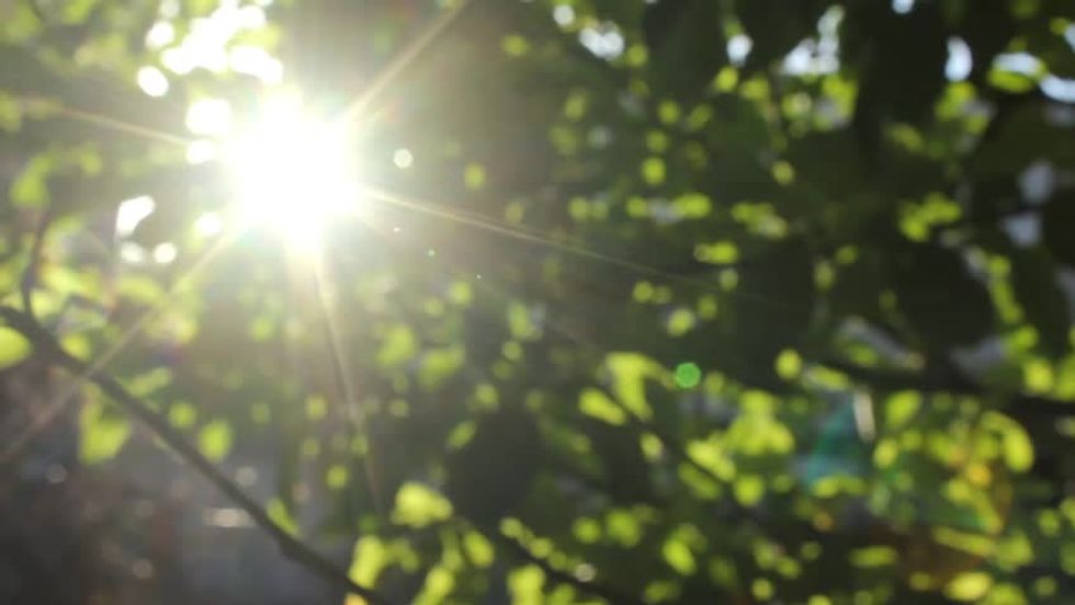 The sun is shy peaking around the evergreen tree