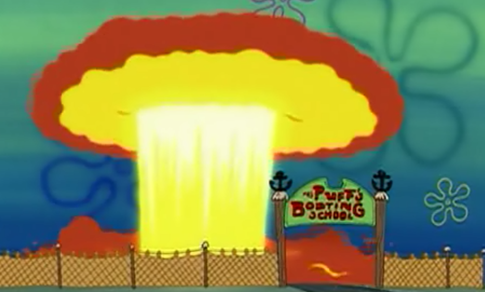 In the 40s and 50s, the United States conducted nuclear testing in Bikini Atoll at the Marshall Islands. As a result, a lot of radiation was sent underwater. Nickelodeon has said that SpongeBob's town, Bikini Bottom, is in fact located underwater in Bikini Atoll. With this knowledge, many fans believe that the weird mannerisms the characters all display is the result of being a "mutant." They claim that these characters, like a sponge that wears pants, a snail that meows, and a starfish that talks, were created in the show's world by the underwater radiation. In addition to all this, whenever there's an explosion in the show, a nuclear-like mushroom cloud forms. This is a very plausible conspiracy.