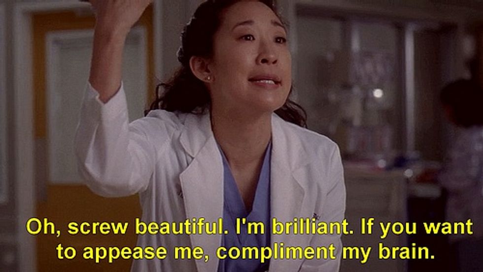 She sticks to her guns and nothing drives her but her passion and love for medicine and helping others. Because of this and her hard work, she is a brilliant surgeon who outranks almost every other doctor on the show, male or female. She is funny, charismatic, a good friend, and is not afraid to fall in love. Women often think they have to choose between love, a social life, and having a successful career, but Yang is a reminder that we too can have it all.