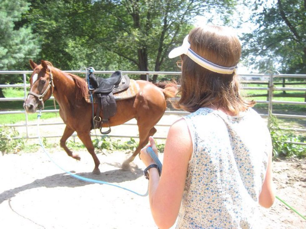 (Photo below is of me, doing a groundworkexercise with Sadie, using Clinton Anderson's method.)
