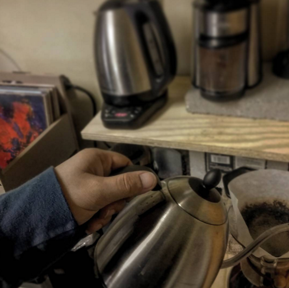 Finals week? Oh, goodness. You were so lost in your records and coffee, that for about an hour-and-a-half, you forgot the things that bog you down. Everyone is dying inside all around you, and you're happy. You've rarely been better. There's a new tune stuck in your head, a new taste in your mouth (puns absolutely intended), and a new sway in your step. You stride in to class proud, confident and happy. Your notebook is a little wet when you pull it out, but it doesn't bother you. You rip out those damp pieces of wood fiber and you use a fresh one. Nothing is getting you down right now. Tomorrow, the world will try even harder to make you feel like you felt a couple hours ago. But with the help of your two new friends...