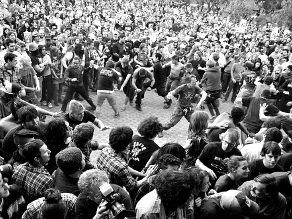 Next on the ticket was Inquisition. With a badass front man who sang and shredded guitar, and one helluva fierce drummer, this satanic duo dominated the stage. I knew none of their songs – never even heard of them before – but that first screeching riff of theirs sent me head-over-heels. Filled with far too much energy, the only thing I could do was jump into the mosh-pit and see how long I'd last. I learned a lot in that pit, dancing around, crashing shoulders I realized moshing is just like boxing. You can't stop for even a second, every moment is a balancing act between your fast tiptoes and crashing into ten other people just as sweaty and crazy as you. I did have to stop a few times, my body had enough and I slunk my way over to the side to get back to the music. I only went down once, and saw other people fall far more often, but dammit if that isn't the worst feeling in the world. If you go down in a mosh-pit you'll be perfectly safe, a group will huddle round you, pick you up, brush you off and have you on your way in no time. That doesn't make it any less embarrassing. Getting picked up like that is the only time I ever feel shame during those concerts. It's a sign of defeat, you entered the gauntlet but weren't tough enough to survive. Ah well, it only happened once anyway and in places like that all you care about is yourself and the music.