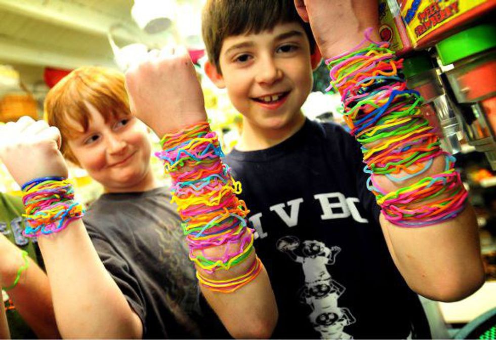 The higher the stack of bands up your arm, the cooler you were. You had every shape from hearts to elephants in a rainbow of colors.