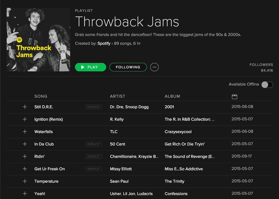 I recommended using Spotify’s #TBT playlist for inspiration for pregame playlists because throwback music makes every party way better because: