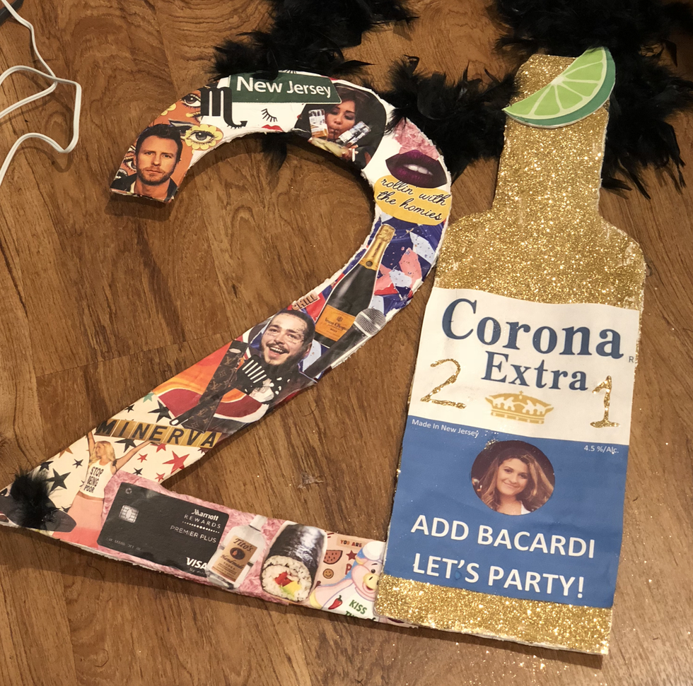 The 21 sign is a very unique custom here at the University of Alabama. When a girl turns 21 she proudly wears a sign that represents herself as she celebrates. From their favorite alcohol to their pets there is such a variety and lots of glitter added to it as well!